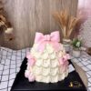 The Pink Bow Dress Cake is designed to capture hearts at first sight. Shaped like a ruffled dress and adorned with delicate pink bows, this cake brings a touch of fairy tale charm to your celebration. Its soft ivory cream base and carefully piped texture resemble a layered gown, while the bows add a graceful, playful finishing touch.