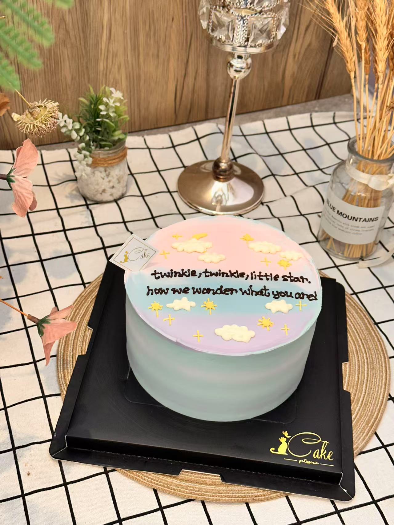 At iCake Melbourne, we believe every celebration deserves a cake that’s as special as the person or moment being celebrated. Our Twinkle Star Cake is baked fresh using only premium ingredients—fluffy sponge layers, silky-smooth creams, and naturally colored frosting for that soft pastel look. You can choose from a variety of popular cake flavors such as vanilla chiffon, chocolate, red velvet, or cookies and cream. We also offer fillings like strawberry cream, custard, or Nutella, so you can tailor your cake to match your taste.