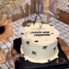 The Black Bow Vintage Cake is inspired by the classic elegance of ribbon details, reimagined in a fresh and stylish way. Delicate black bows are piped around the cake, creating a sophisticated contrast against the smooth cream base. The design is finished with soft ruffled edges and pearl-like decorations, giving it a subtle vintage look that is perfect for any occasion. With its simple yet striking appearance, this cake has quickly become one of the most popular choices for customers who appreciate refined design.