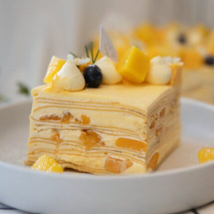 Perfect for mango lovers, crepe cake fans, or anyone looking for a lighter dessert option, the Mango Crepe Cake is a crowd-pleaser across all ages. Whether shared with family, friends, or enjoyed as a seasonal treat, this cake brings a little sunshine to every slice.