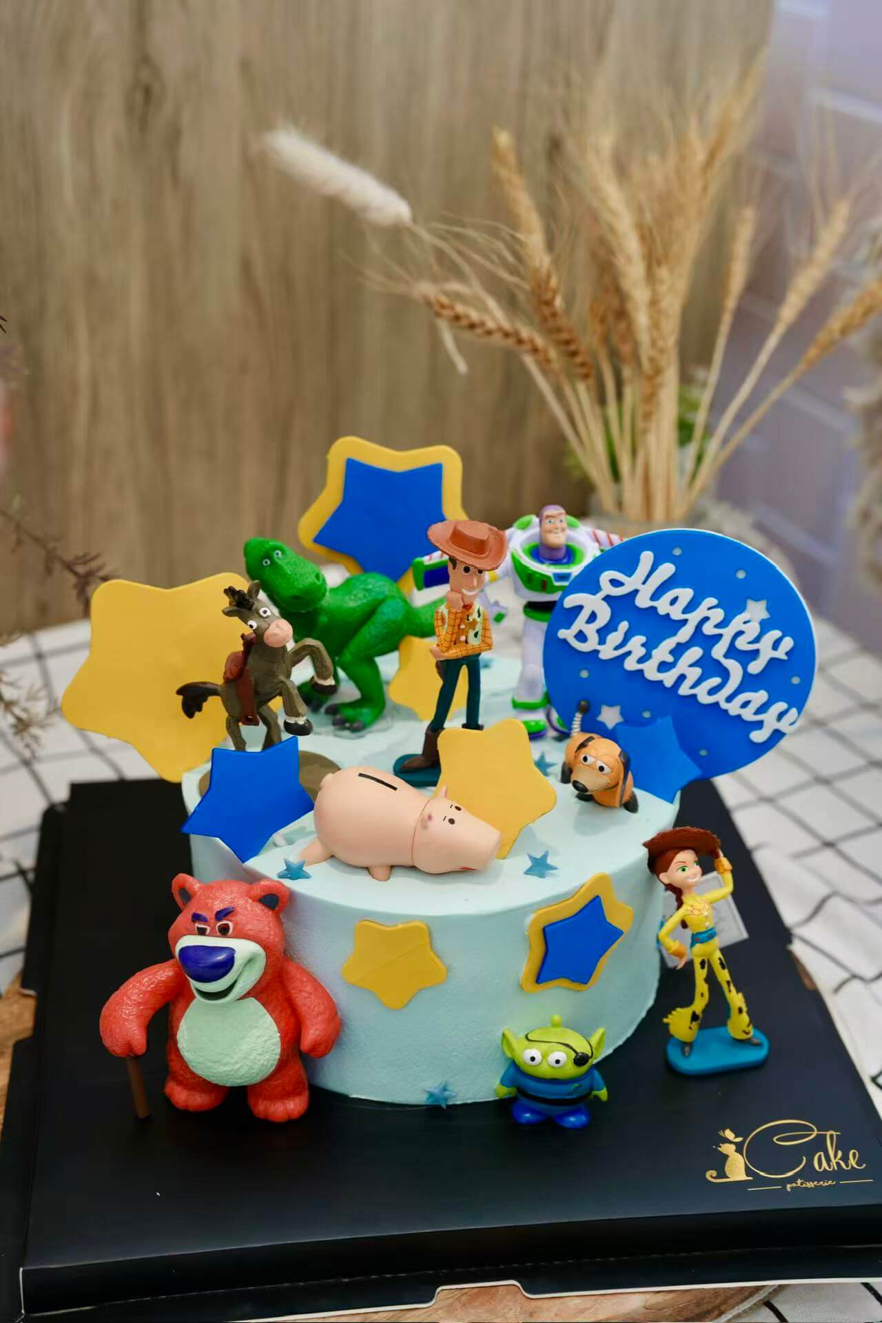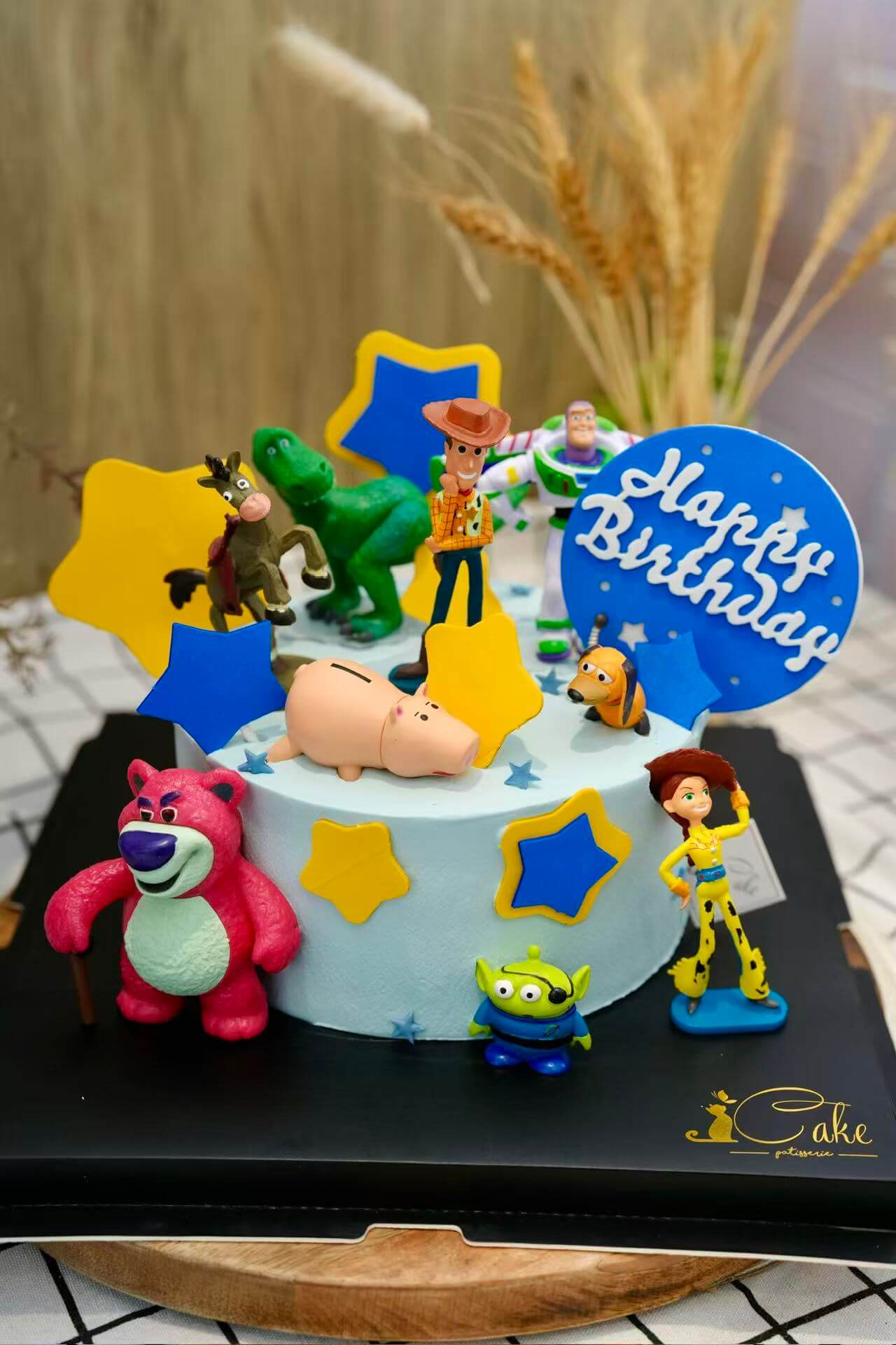 Beyond its fun appearance, this Toy Story birthday cake is also designed with versatility in mind. It can be customized in size to suit small family gatherings or larger birthday parties. Flavor options are available to match your preferences, ensuring the cake tastes just as good as it looks. The sturdy structure allows the Toy Story figurines to stand securely, while still keeping the overall design neat and elegant.